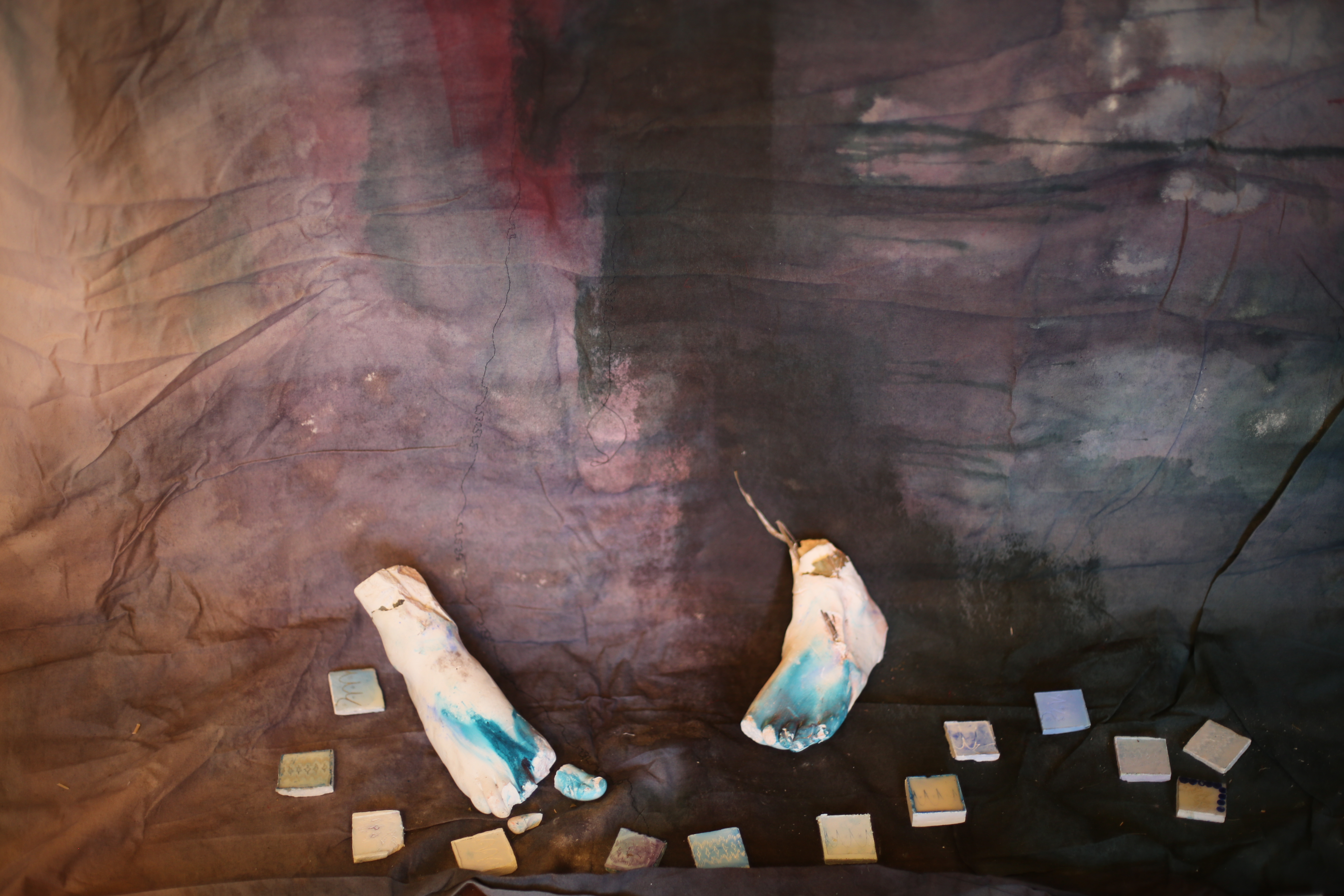 Plaster Tiles, Feet, Vase, Beans
